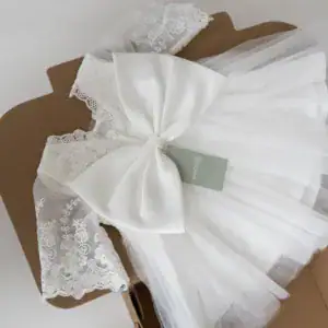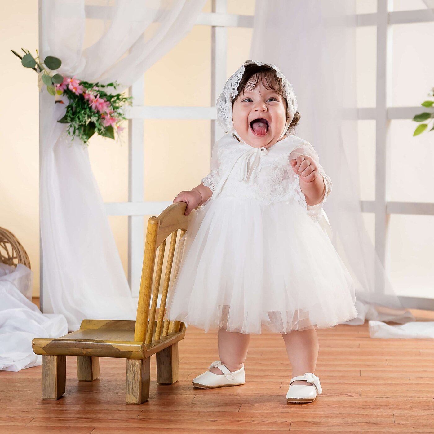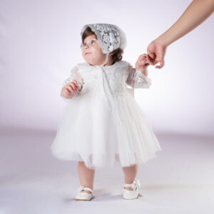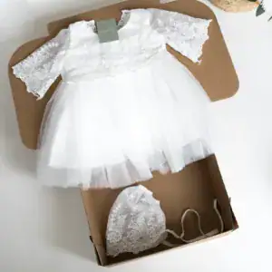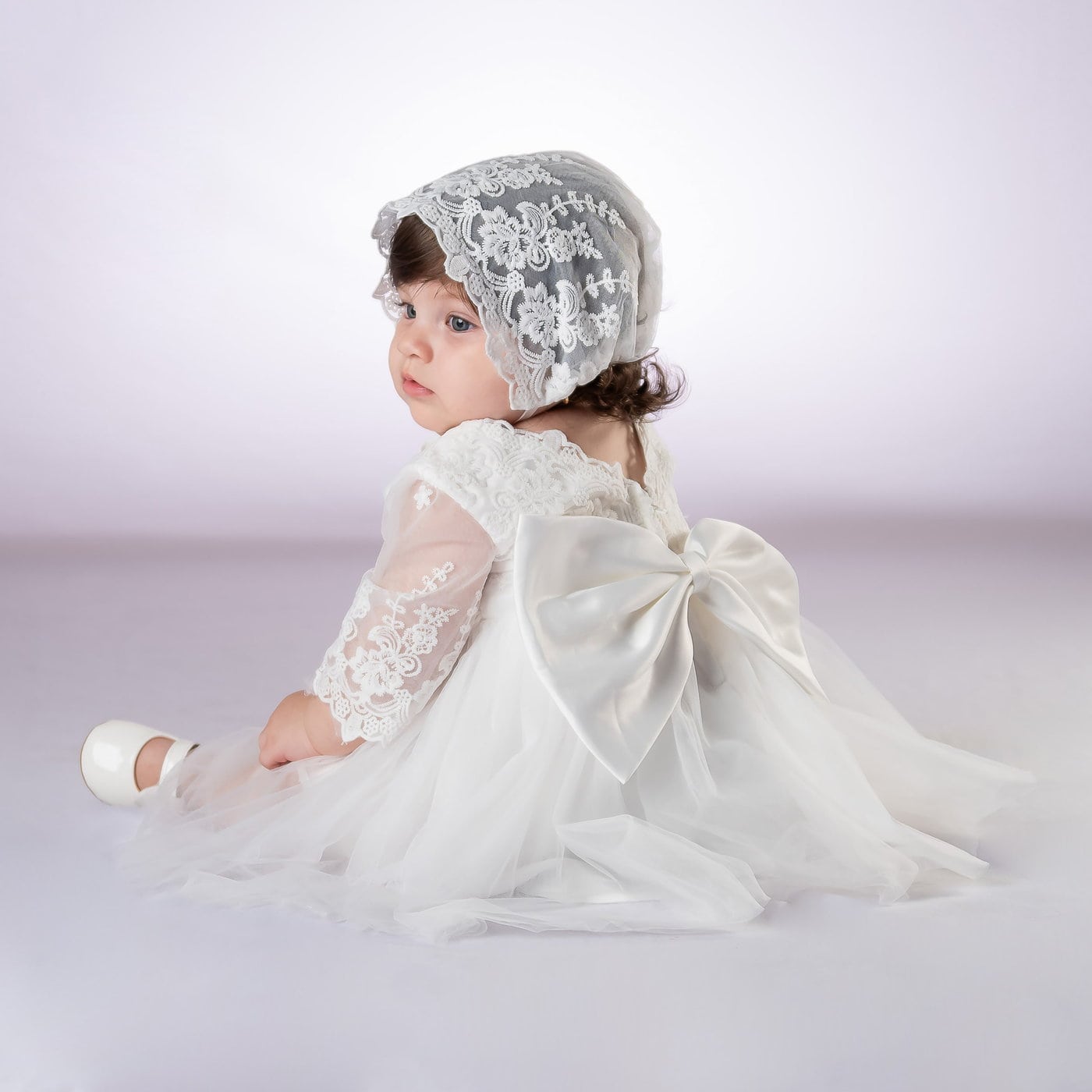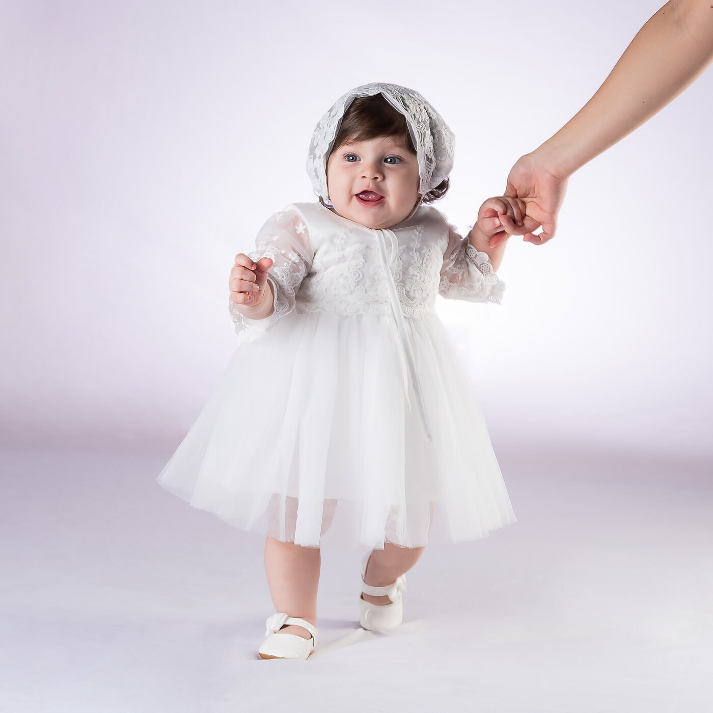 VESTIDO bautizo hecho con encaje y algodón suave, ideal para la piel delicada del bebé. Es cómodo, elegante y perfecto para un día tan especial. Incluye un gorro a juego.